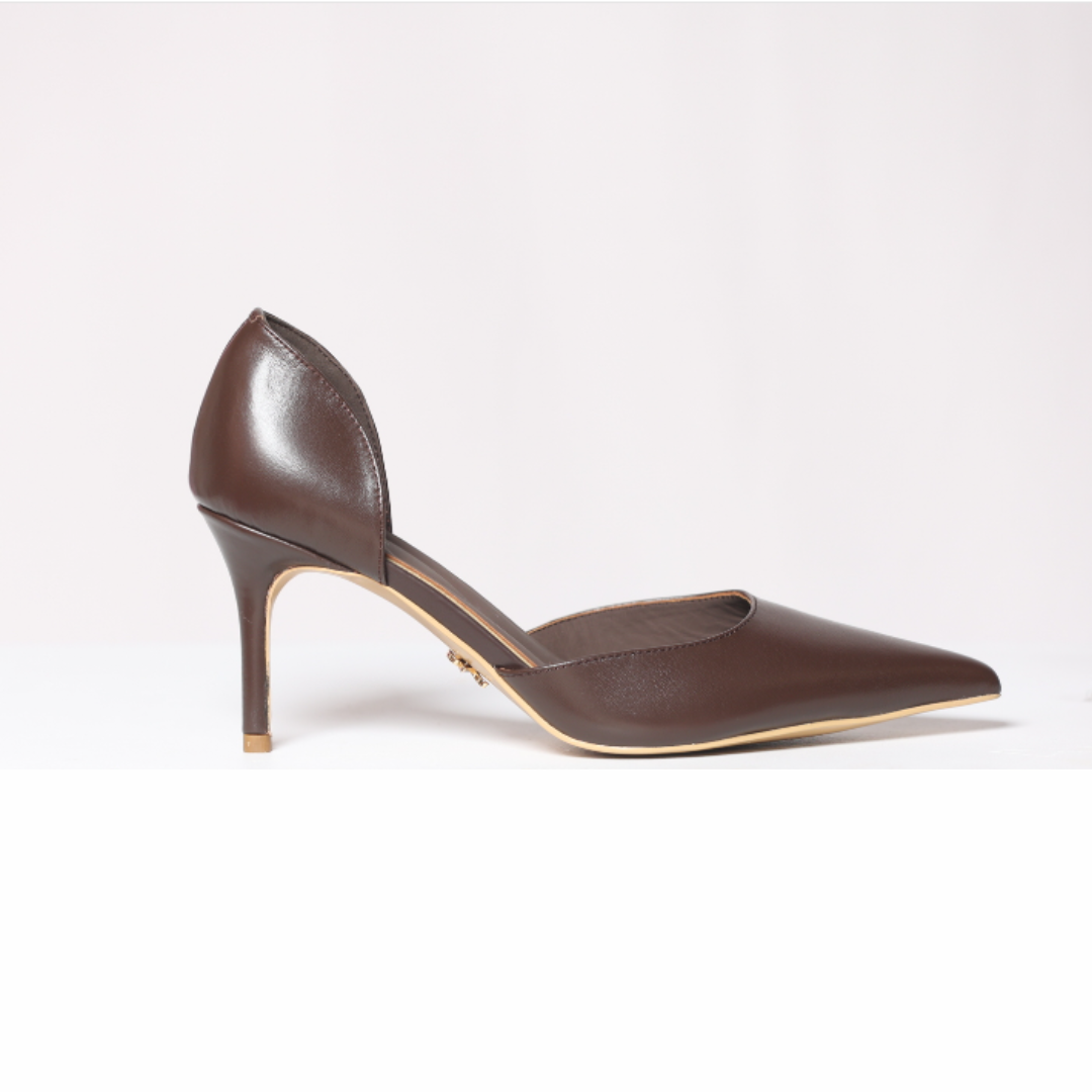 Introducing the epitome of poise and sophistication: the BriAnn Matte Stiletto Pump by Diamond Zephir. Crafted from high-quality leather materials, these pumps feature a sleek, matte finish available in a variety of nude and brown-toned shades, designed to seamlessly blend with and enhance diverse skin tones. The classic 3-inch stiletto heel elongates your legs, while the pointed toe adds a touch of timeless chic.